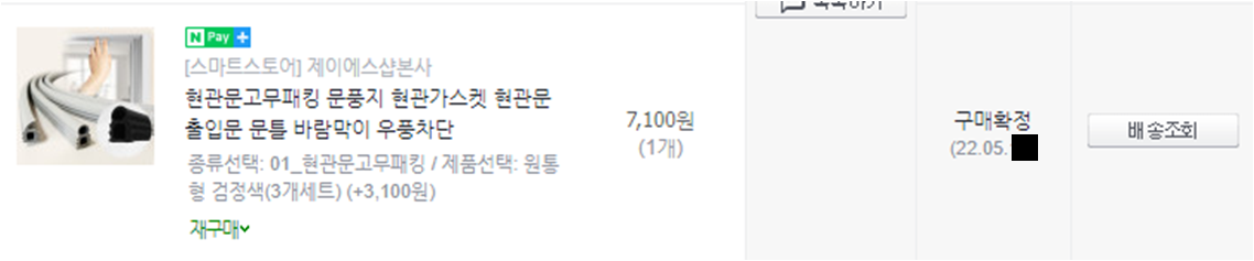 가스켓은 현관의 방화문 (철문)에 끼워지는 고무입니다. 따라서 가스켓을 끼울 수 있는 홈이 있어야 합니다.