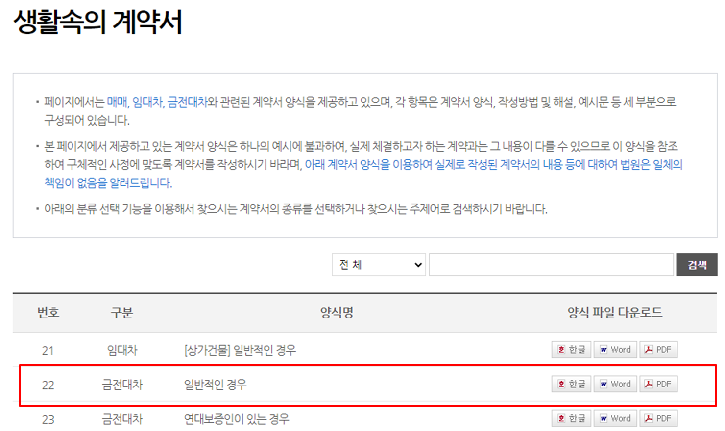 글번호 22번 금전대차-일반적인 경우 양식을 다운받으면 된다.