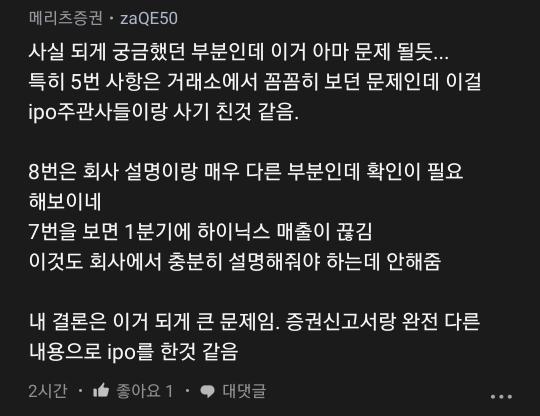 특히 5번 사항은 거래소에서 꼼꼼히 보던 문제인데 이걸 ipo주관사들이랑 사기 친것 같음.
