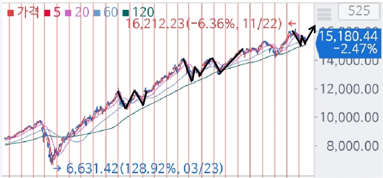 지난번 글에서 미국 지수의 W자 반등을 예상했고, 지난주 강한 반등으로 W자 반등이 일어났고,