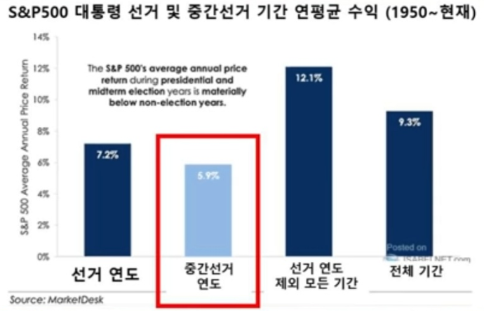중간선거가 있는 해는 아무래도 불확실성으로 인해 큰 상승이 일어나기는 어렵나 보다.