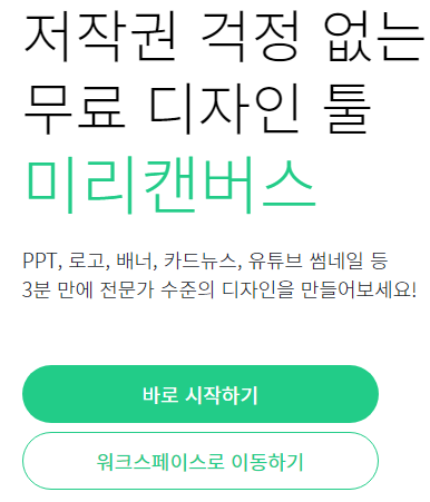 저작권 걱정없이, 워터마크 없이, 상업적으로도 마음대로 이용하라는 타이틀을 단 미리캔버스.