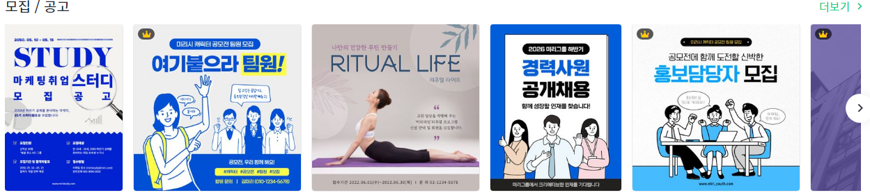 한번 둘러보니 캔바보다는 디자인이 좀더 국내 감성이라고 해야하나?