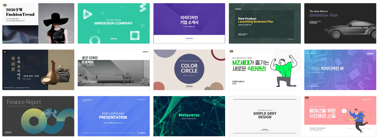 위와 같이 미리캔버스와 캔바의 PPT 템플릿 예시를 비교하면 각각의 느낌이 전달될지 모르겠다.