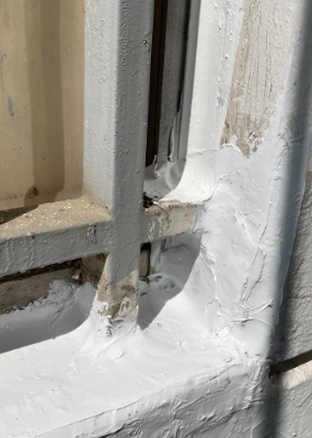 위 사진을 보면 기존 코킹이 이미 거의 다 떨어져 있었다. 이미 다 떨어진 코킹 위에 덧방으로 진행할 경우 다시 다 떨어지게 된다. 코킹이 단단한 면에 붙어있어야지 떨어지지 않는다고 한다. 덧방은 금방 다시 떨어진다.