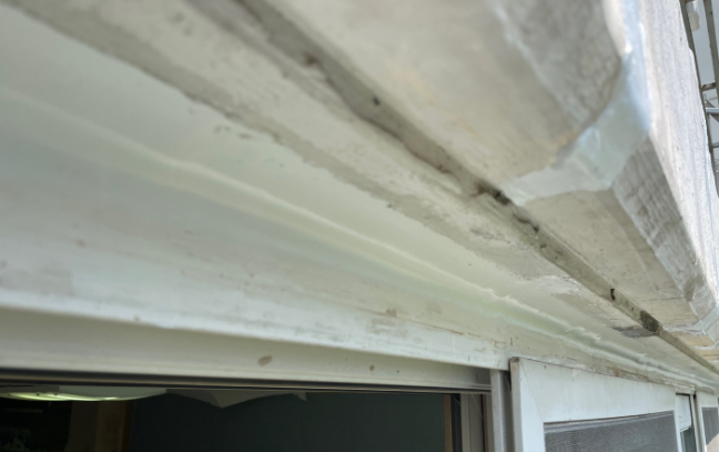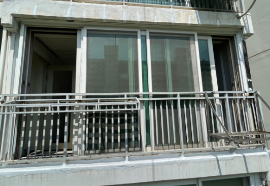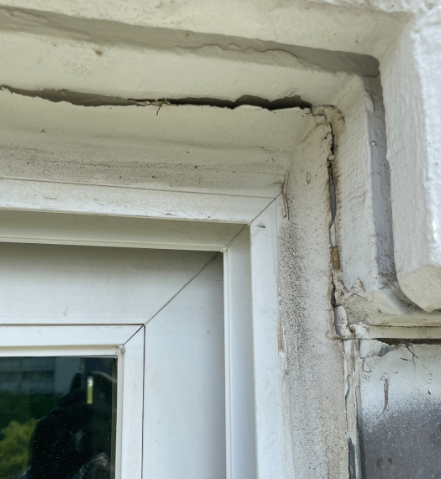 필자가 셀카봉을 이용해서 외벽 부분을 폰으로 찍어보니 외벽 샷시 코킹도 불량이었고, 크랙도 많이 있었다.